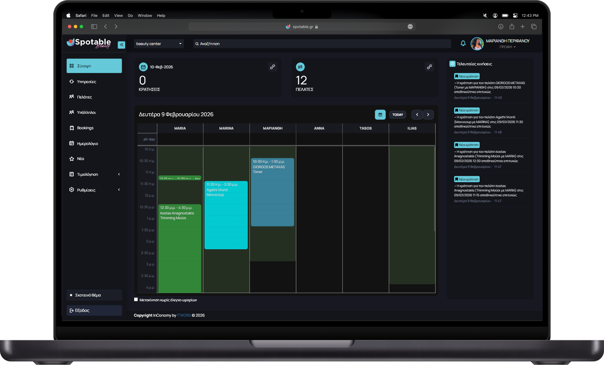 Ρύθμισε βάρδιες και διαθεσιμότητα ανά μέλος της ομάδας, ώστε το σύστημα να εμφανίζει μόνο τα σωστά & διαθέσιμα κενά. Λιγότερη σύγχυση, λιγότερα κενά, καλύτερη αξιοποίηση χρόνου.